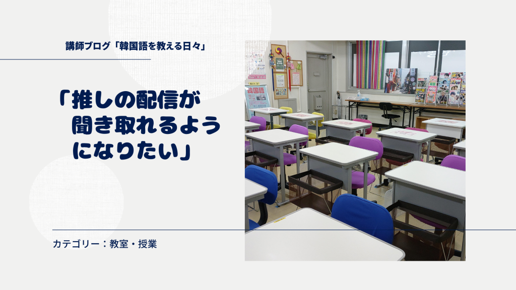 先日の「中級コース」の授業が始まる前に、受講生の方が、「推しの配信が聞き取れるようになりたい」とおっしゃいました。